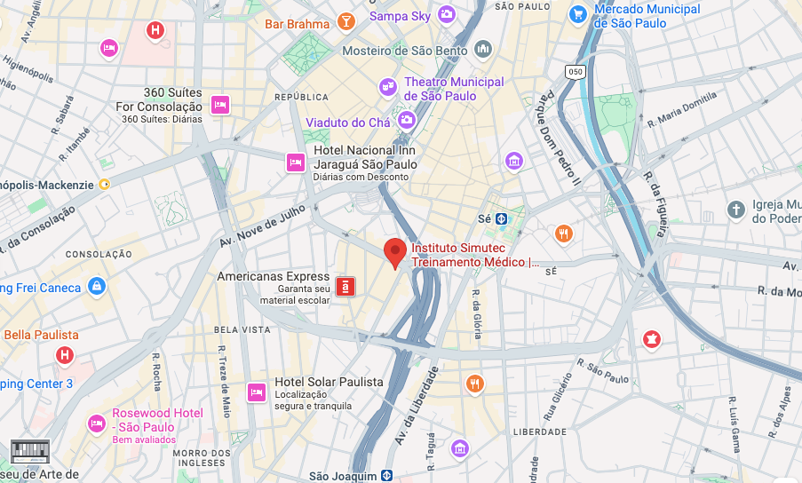 A sede do Instituto Simutec em São Paulo está localizada no bairro da Bela Vista, dentro da Associação Paulista de Medicina (APM), uma das regiões mais estratégicas da cidade. A proximidade com grandes hospitais, centros universitários e instituições de referência facilita o deslocamento dos residentes e otimiza o aproveitamento do tempo entre atividades da residência e treinamentos práticos.